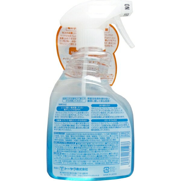 ギフトサービスについて 楽天国際配送対象店舗 (海外配送) Rakuten International Shippingトーヤク株式会社個装サイズ:96X200X55mm個装重量:約500g内容量:430mL製造国:日本【発売元:トーヤク】【成分】セスキ炭酸ソーダ[レンジ周り・換気扇・グリル・電子レンジの汚れ]・汚れたところにスプレーし拭き取ってください。