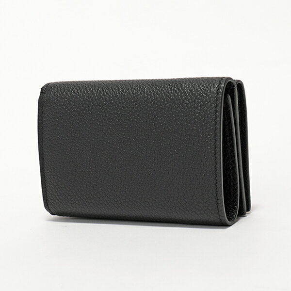 シボ加工が施された上質なレザーにロゴの箔押しが際立つ三つ折りミニ財布。