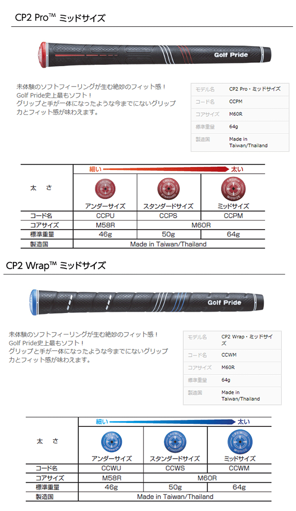 Golf Pride -ゴルフプライド- CP2 アンダーサイズ コアサイズ:M58R 重量:46g