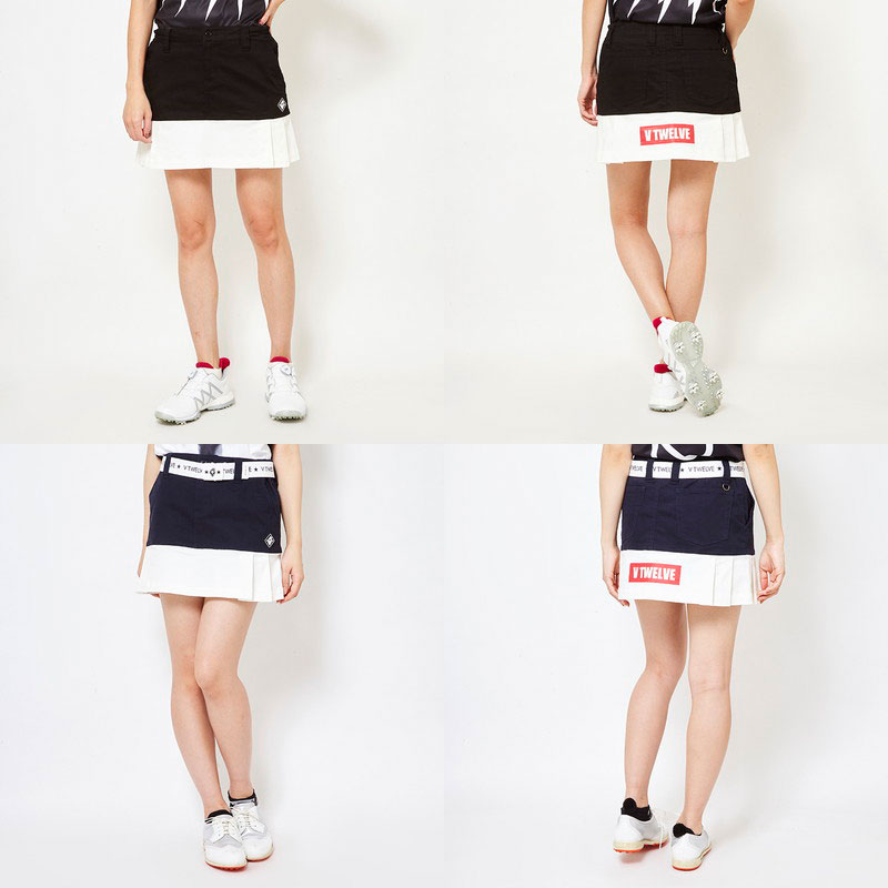 【コンビニ受取対応商品】 レディース商品詳細 ゴルフウェア ブランド名 V12 ゴルフ ヴィ・トゥエルブ 商品名 スカート インナーパンツ一体型 ストレッチ TWO TONE SKIRT バイカラーデザイン ゴルフウェア メーカー希望小売価格 17000円(税別) 表記サイズ S(0) M(1) 実寸サイズ S(0) ウエストまわり66cm ヒップまわり86cm 総丈35cm M(1) ウエストまわり70cm ヒップまわり90cm 総丈37cm 素材 綿98% ポリウレタン2% 別布 ポリエステル92% ポリウレタン8% 機能 ストレッチ インナーパンツ付き ウエスト伸縮 ウエスト一部ゴム入り Dカン付き カラー ブラック(BLK) ネイビー(NVY) ホワイト(WHT) 説明 サイドプリーツがポイントになった、バイカラーデザインのスカート。